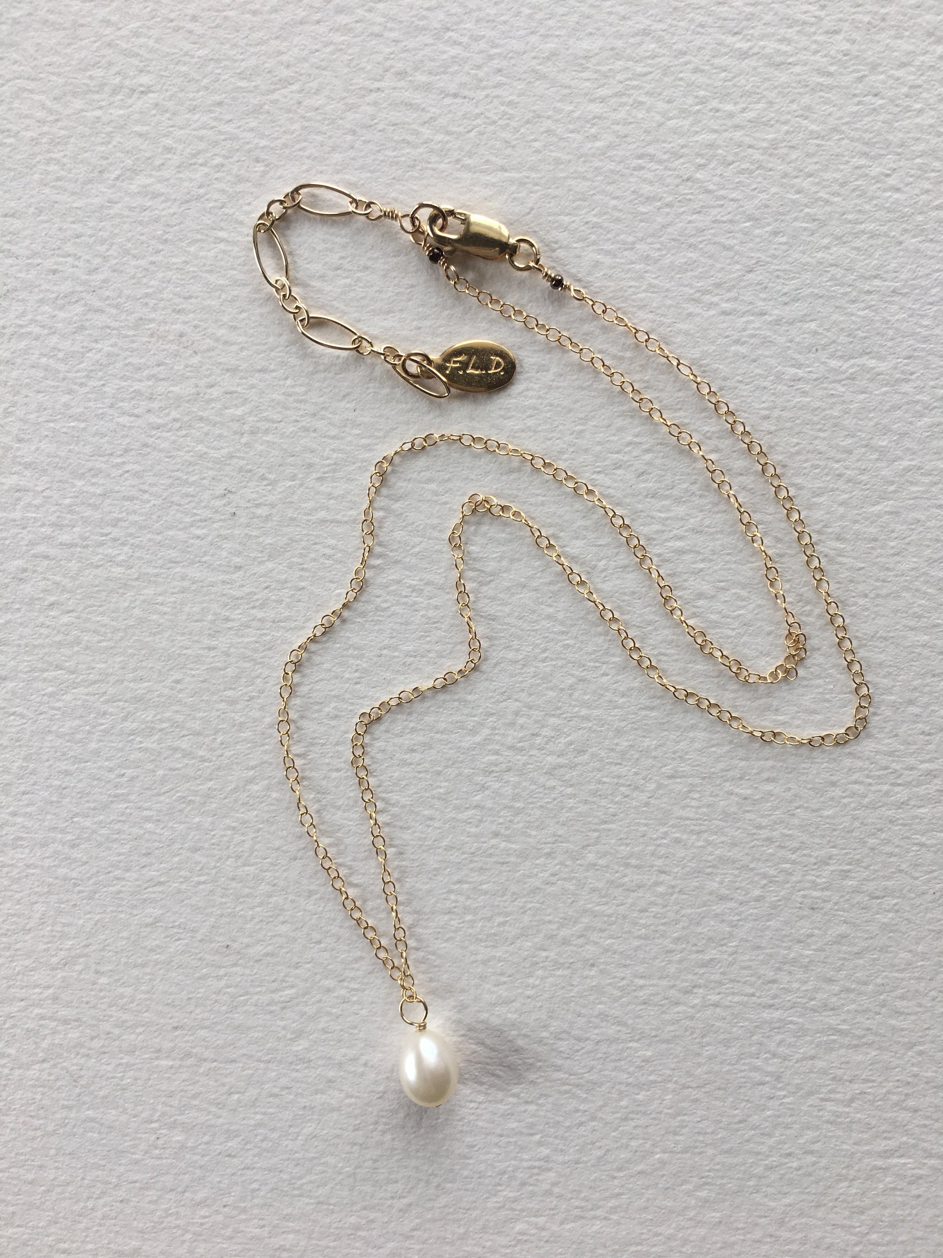 Freshwater luminous pearl on 14 k gold fill chain . 16-18”