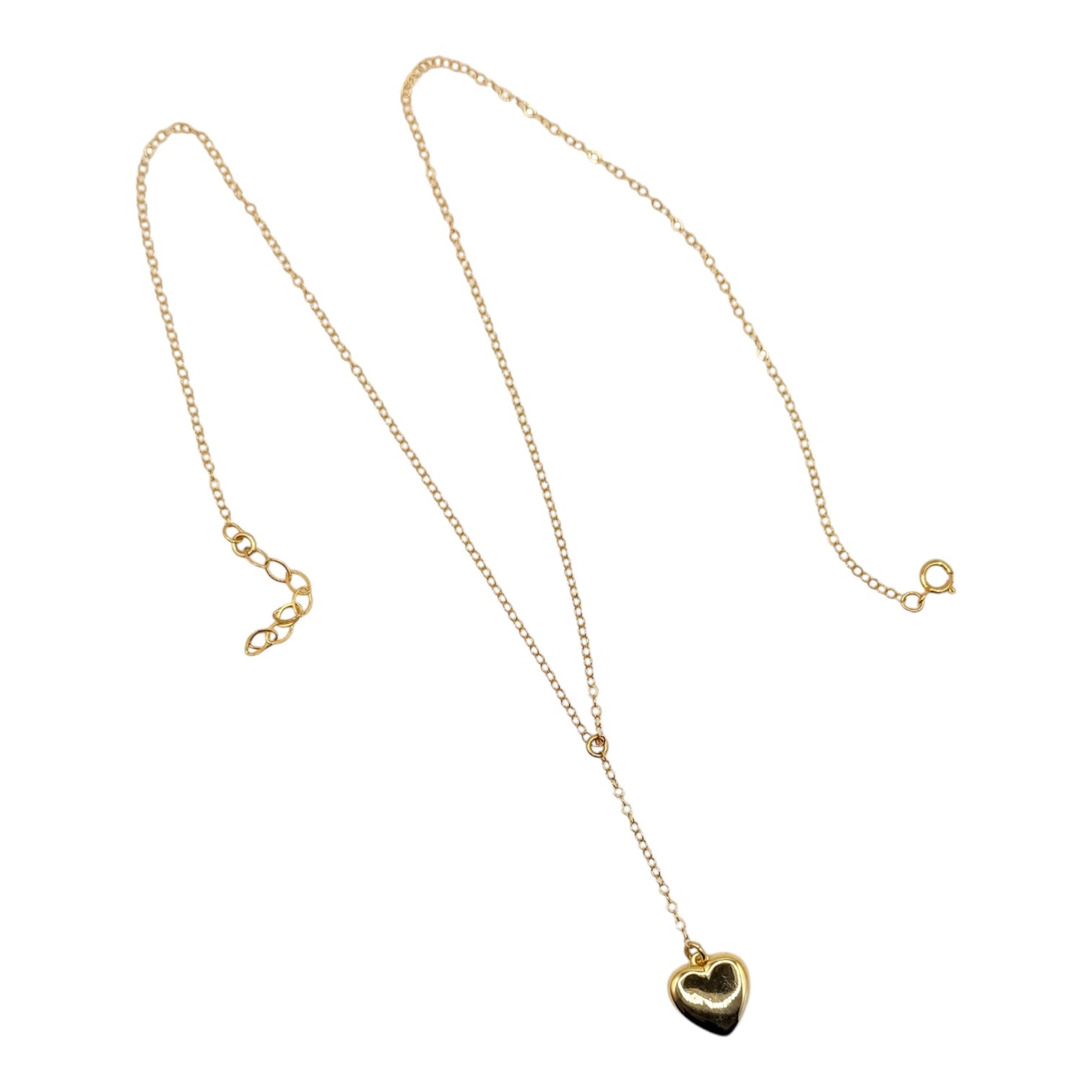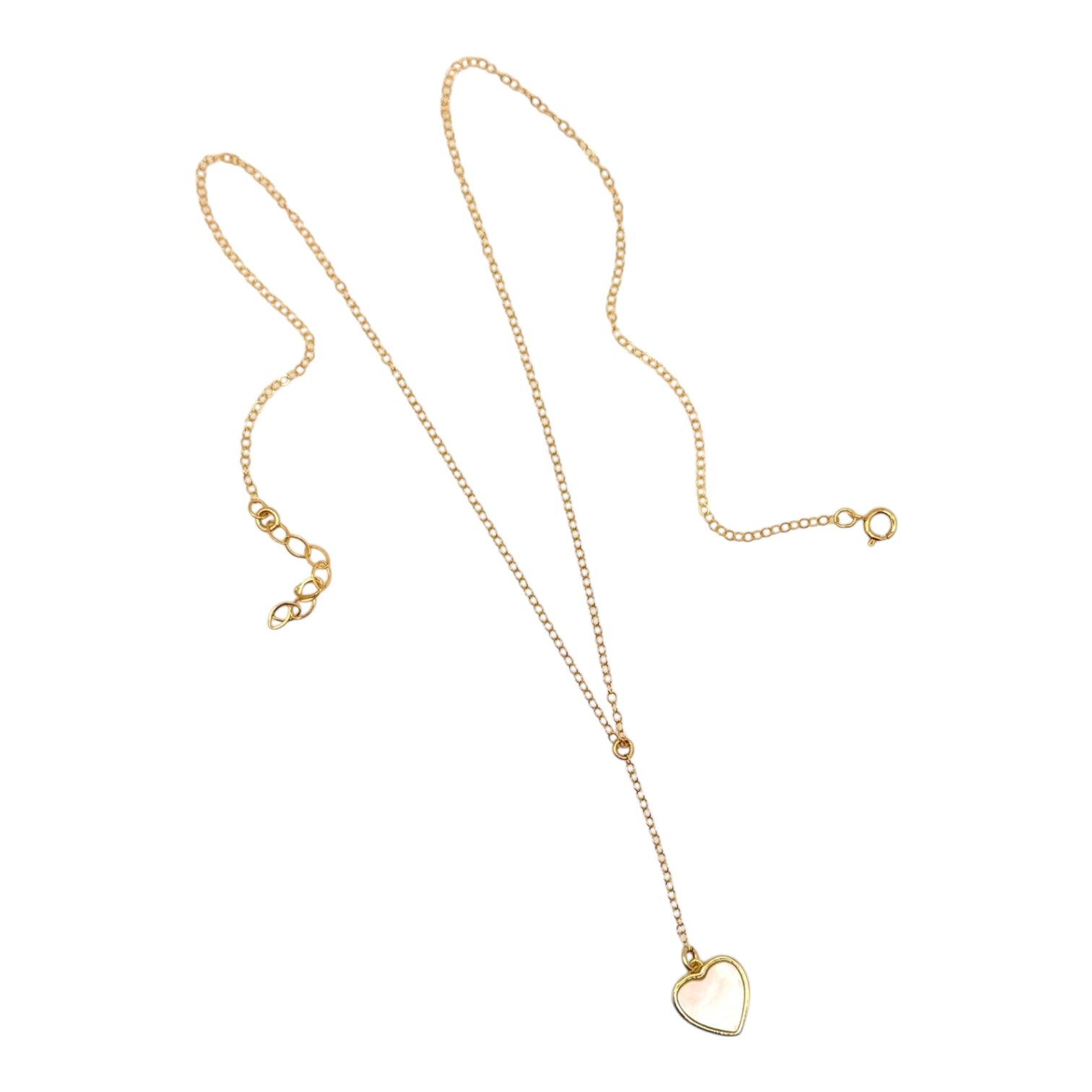 A Delicate pearl heart charm drop on 14 k gold fill chain . 18-20”.