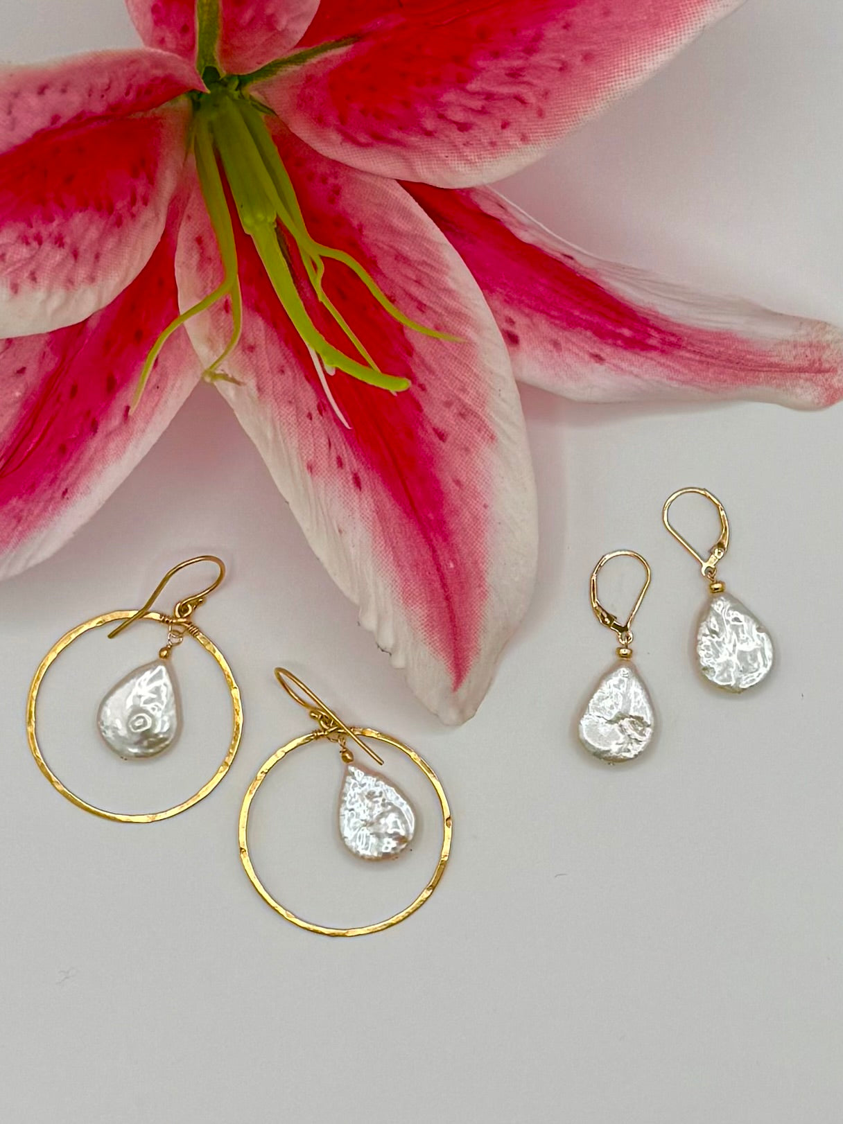 These baroque white pearls are simply beautiful and will enhance any outfit, day to night. Flat teardrop shape.