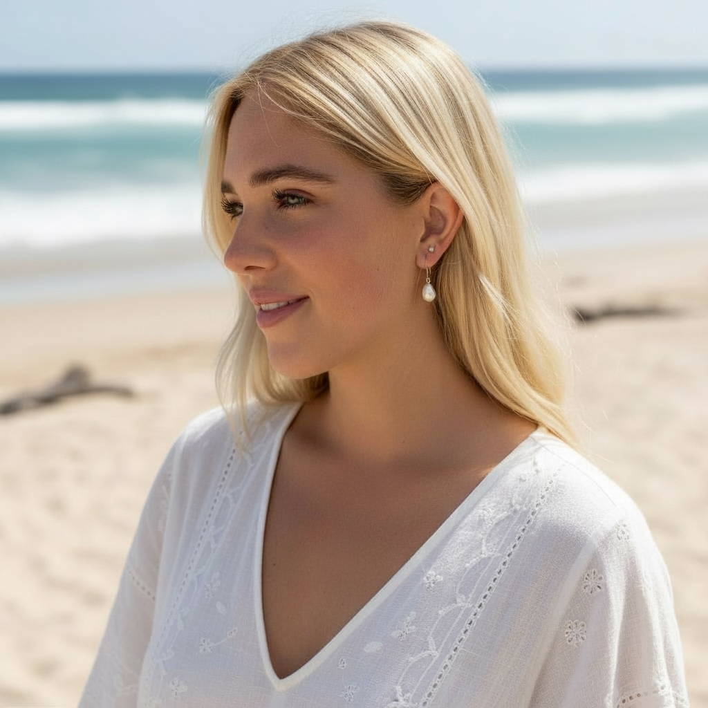 White baroque pearl with 14 k gold fill leverbacks .Hangs 1”. These are natural shape baroque pearls.