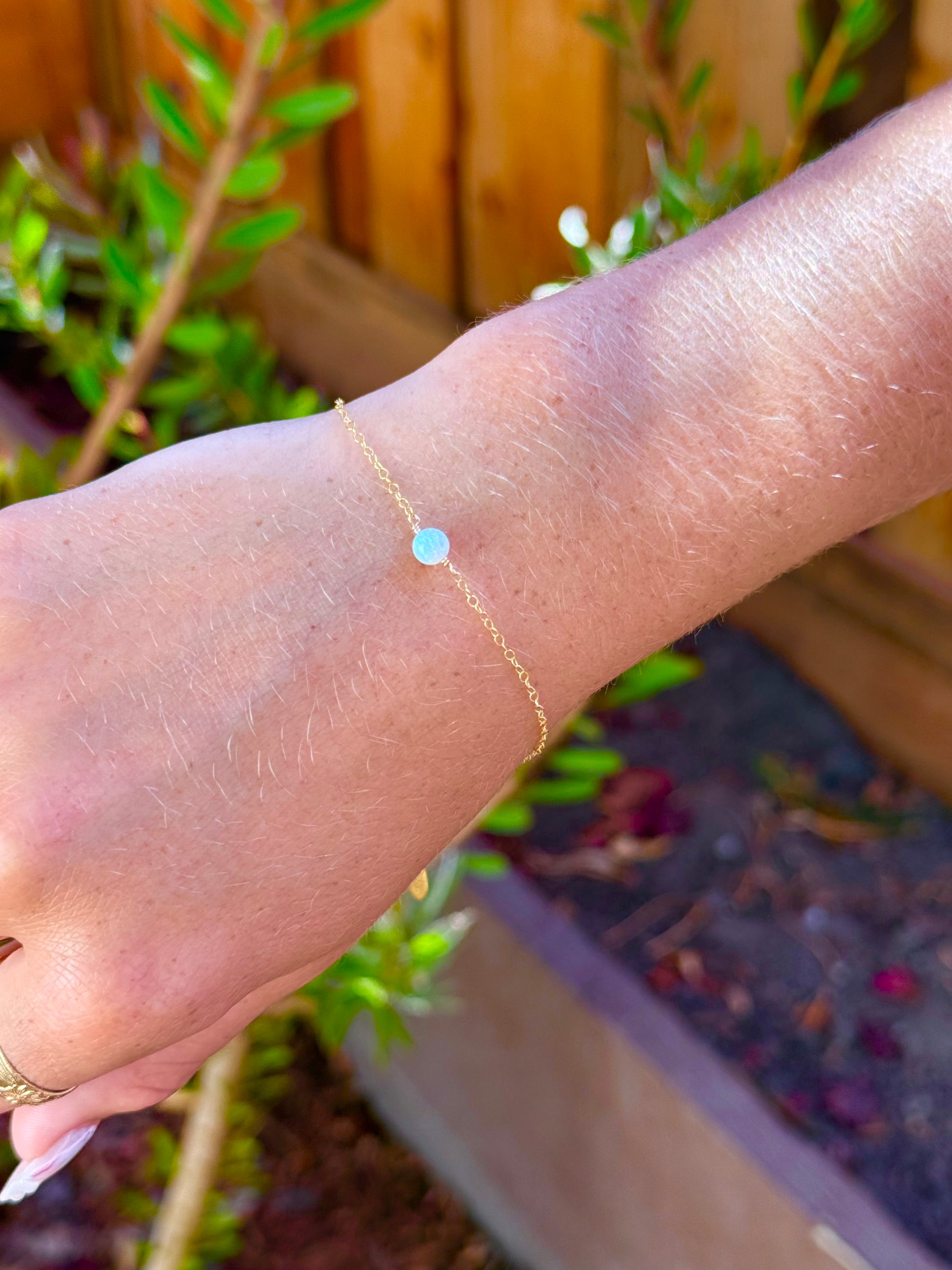 Perfect dainty summer gold bracelets . Choose opal/ pearl or satellite chain . 14 k gold fill . Adjustable .