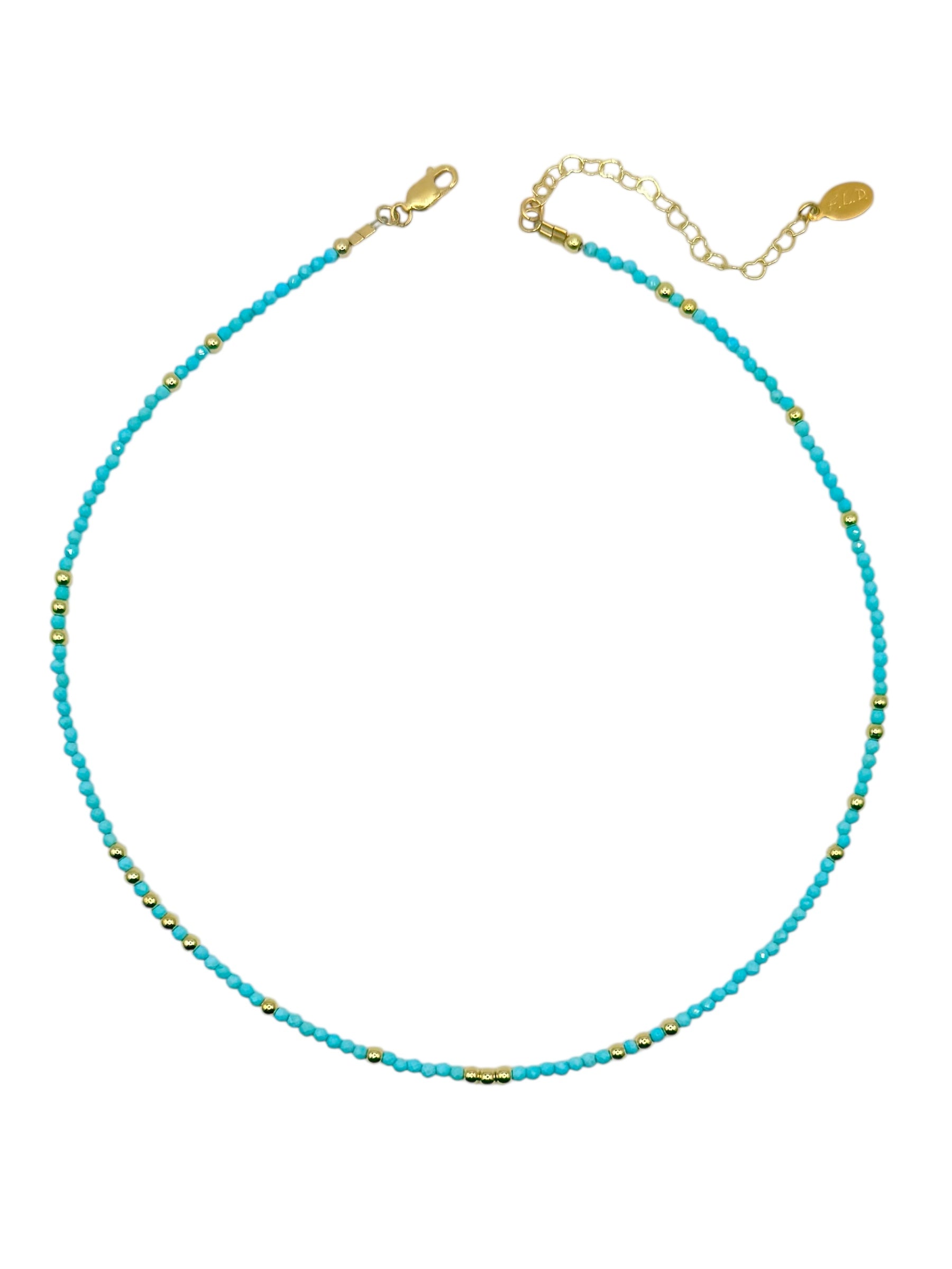 Beautiful blue turquoise or Rhodalite garnet .Faceted 2mm round beads . Choose Color in notes . 14-18” in length a with gold heart chain extender.