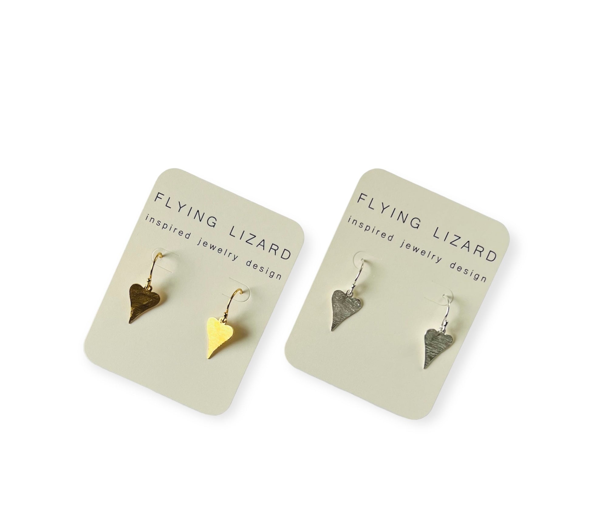 Sweet heart earrings . Available in silver or gold . Matte finish .