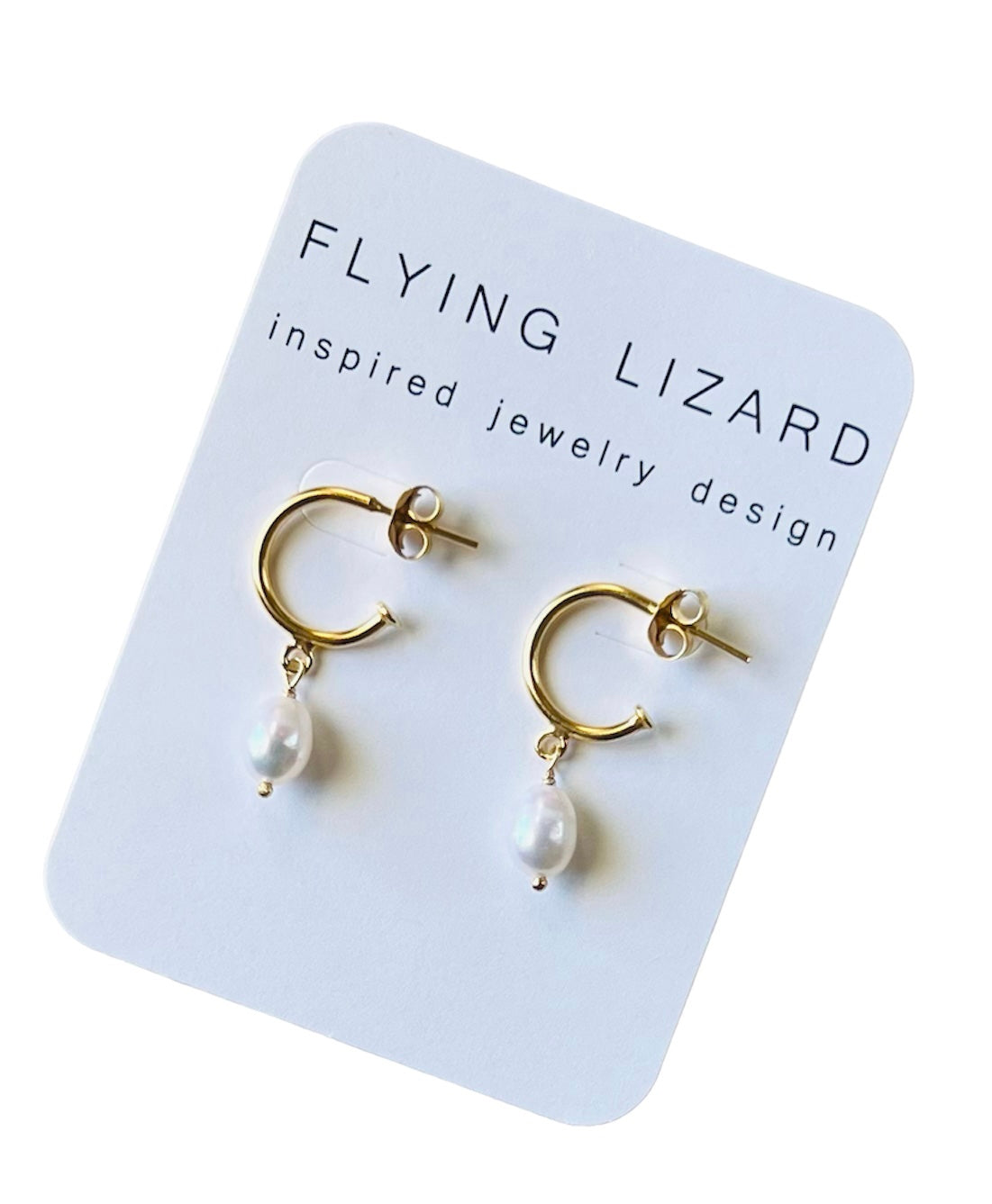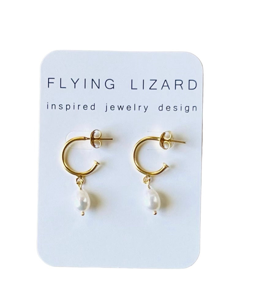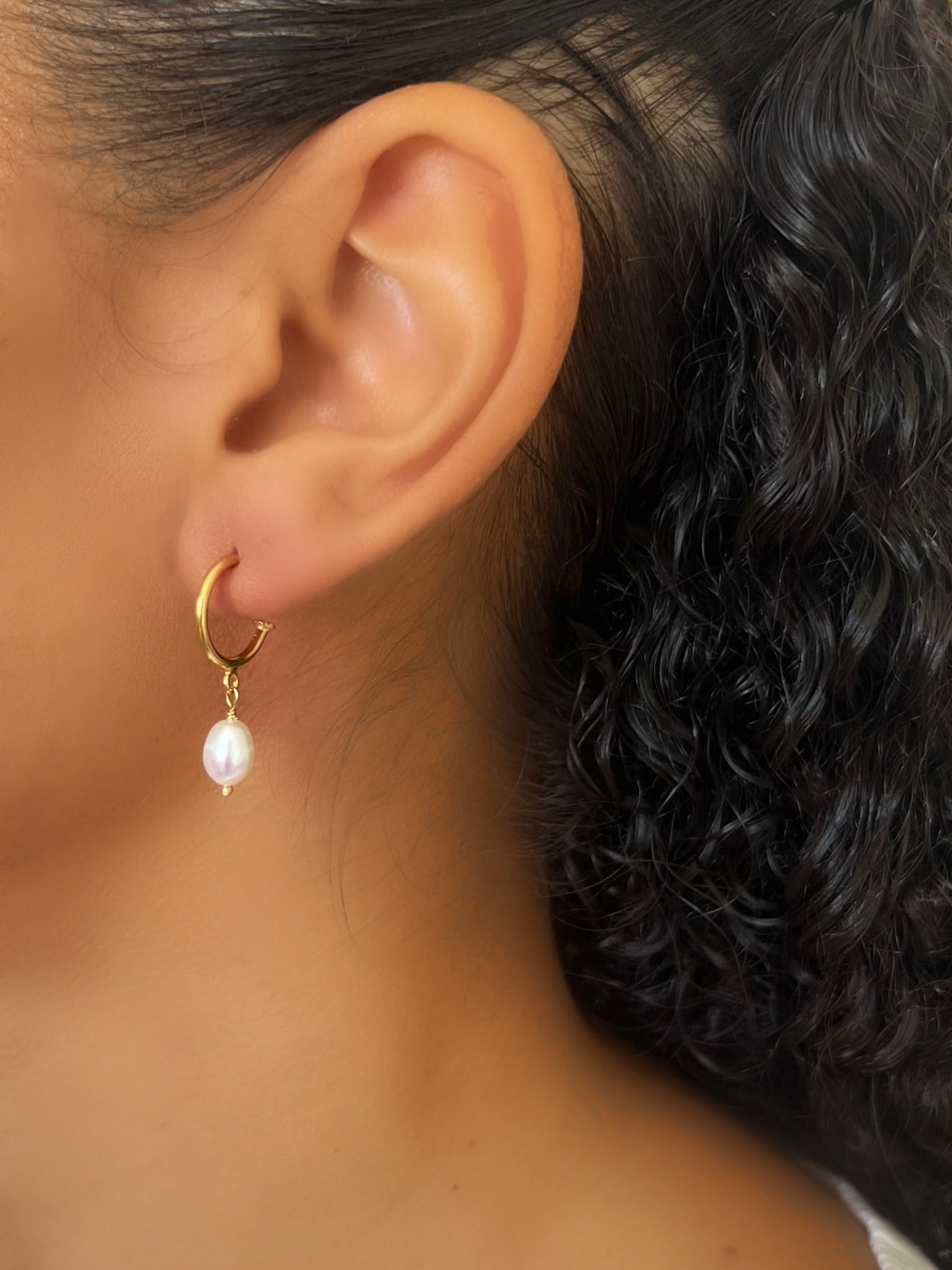 Perfect everyday work to evening pearl earrings . Fresh water pearls on 14 k gold fill half hoops post .